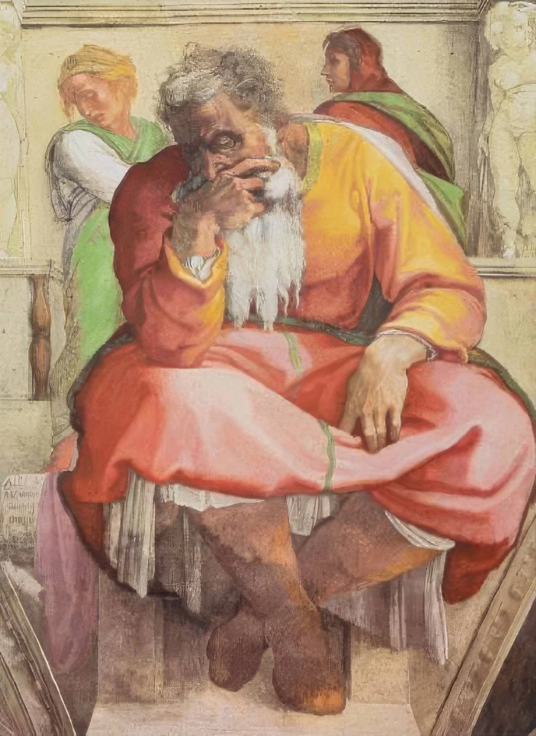 (detail from “The Prophet Jeremiah,” Michelangelo Buonarroti, Italy, Sistine Chapel, 1511)