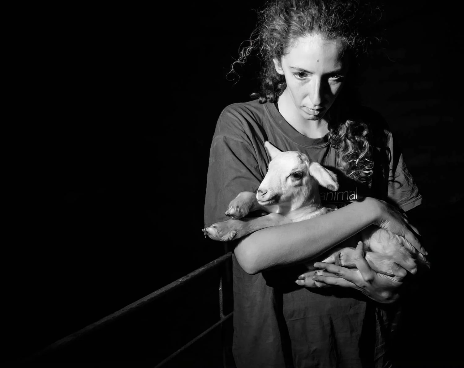 An activist rescues a lamb from dairy, meat, and hide industries. (We Animals Media)