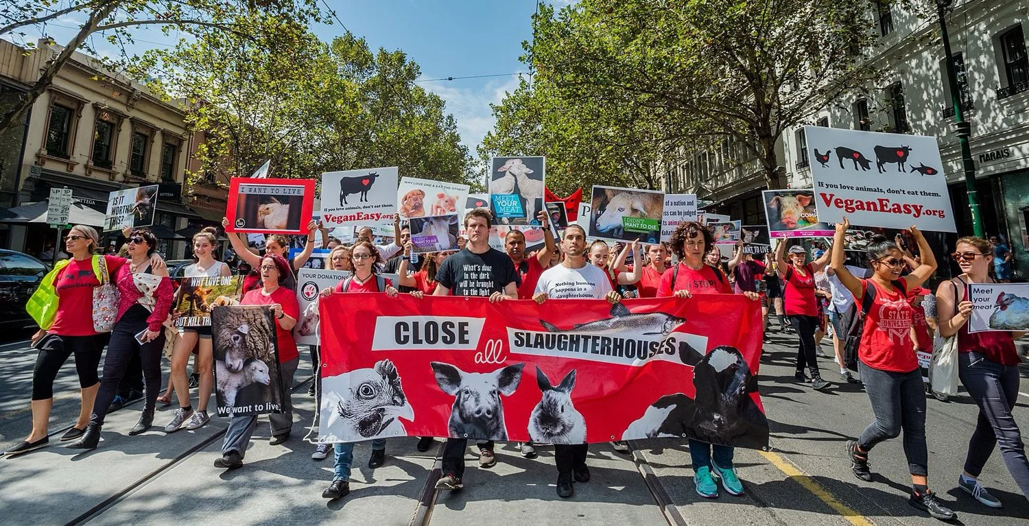 Animal activists in Australia working to restore the Peaceable Kingdom by speaking out against slaughter, as did Tolstoy. (We Animals Media)