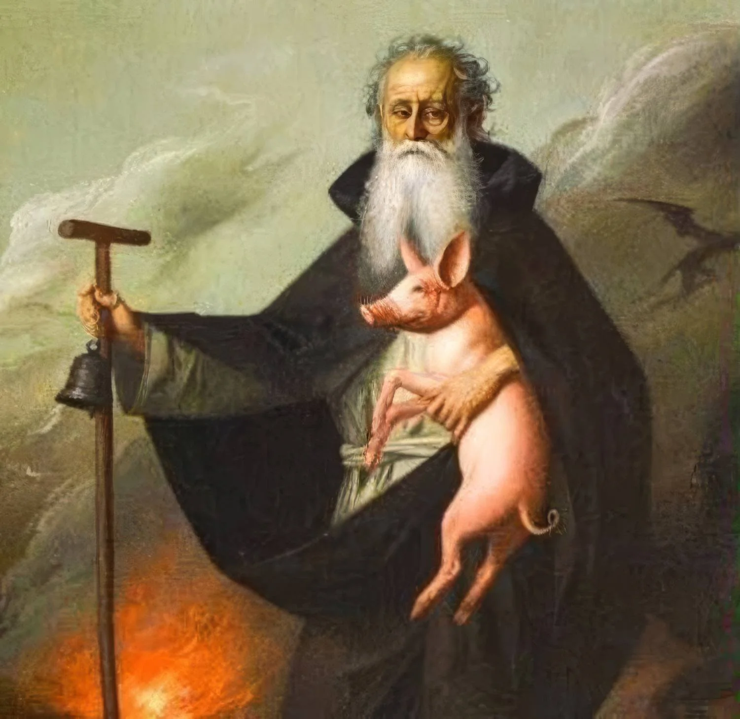 Saint Anthony the Great of Egypt (“The Father of Monks”) with the pig that he healed, who became his constant companion. (Random Times)