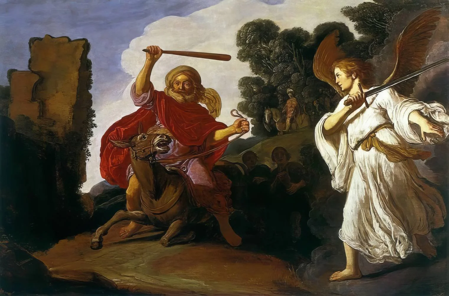 Balaam is humiliated and angry when the donkey he rides lies down in the path.(“Balaam and the Angel,” Pieter Lastman, Netherlands, 1622, Wikimedia Commons)
